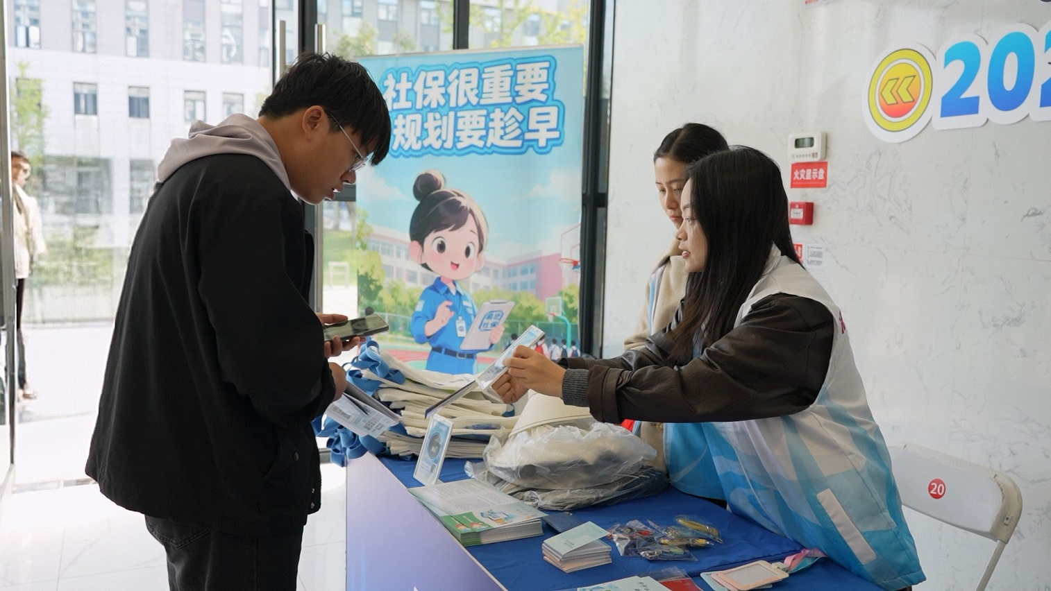 省社保中心工作人員為大學生們提供社保規(guī)劃服務