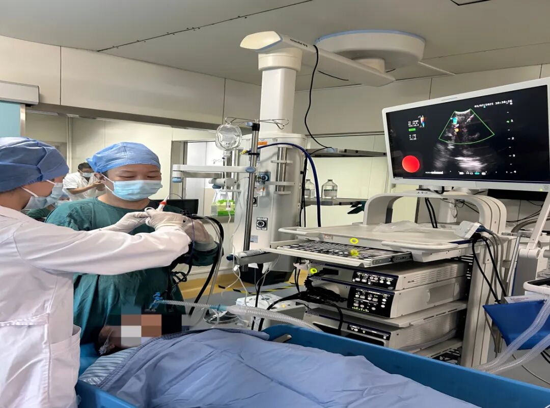 呼吸與危重癥醫(yī)學(xué)科副主任醫(yī)師劉鈞、主治醫(yī)師邱琦牽頭組建診療團(tuán)隊(duì),經(jīng)周密術(shù)前討論,決定采用全麻喉罩下超聲引導(dǎo)穿刺針建隧的縱隔淋巴結(jié)活檢技術(shù)(EBUS-TBNB)。