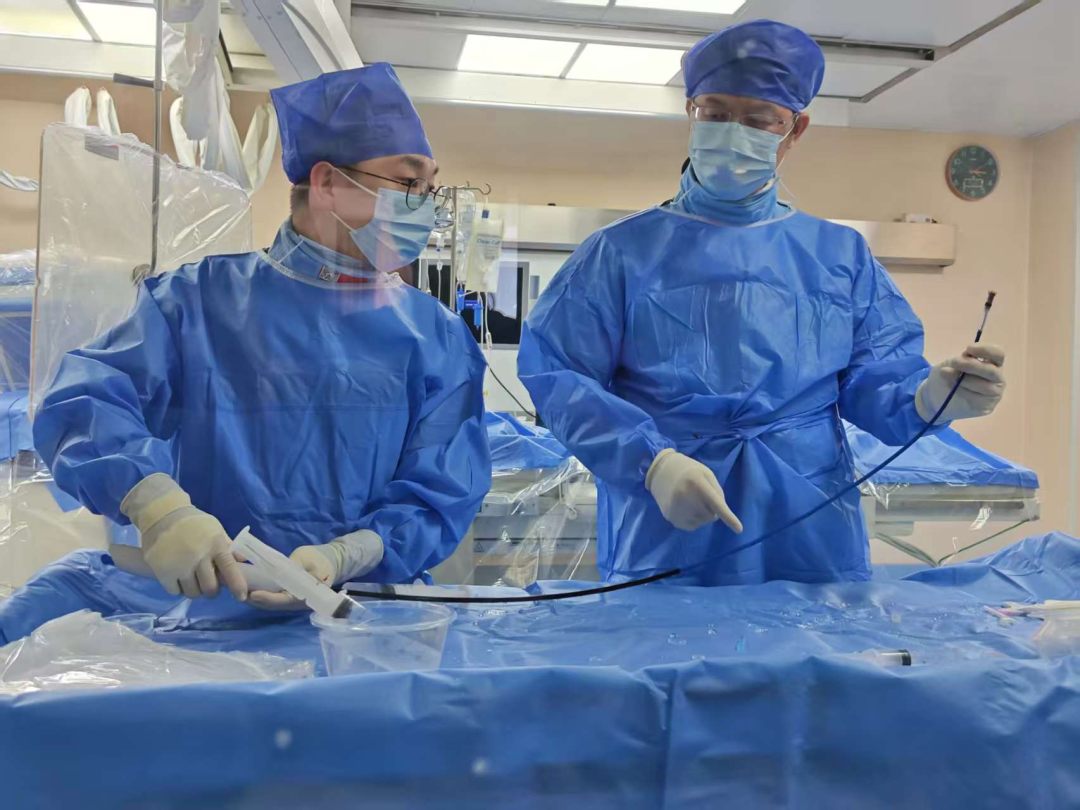 在患者入院第三天,“金心團(tuán)隊(duì)” 成功為患者實(shí)施了經(jīng)股靜脈無(wú)導(dǎo)線起搏器植入術(shù)。整個(gè)手術(shù)過(guò)程各科室緊密配合,醫(yī)療設(shè)備調(diào)配及時(shí)到位,手術(shù)順利完成。