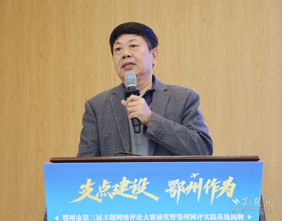 頒獎(jiǎng)活動(dòng)現(xiàn)場(chǎng),湖北省社會(huì)科學(xué)院原副院長(zhǎng)、省政府咨詢委員、長(zhǎng)江經(jīng)濟(jì)帶智庫(kù)聯(lián)盟秘書長(zhǎng)秦尊文受邀出席,并從網(wǎng)評(píng)的角度,圍繞“弘揚(yáng)花湖精神 助力支點(diǎn)建設(shè)”主題,發(fā)表了主旨演講。他結(jié)合最新公布的《中共中央關(guān)于制定國(guó)民經(jīng)濟(jì)和社會(huì)發(fā)展第十五個(gè)五年規(guī)劃的建議》,高屋建瓴分析了鄂州當(dāng)前的經(jīng)濟(jì)形勢(shì),提出了切實(shí)可行的建議。湖北省委直屬機(jī)關(guān)工委干部馮歡以中央網(wǎng)信辦網(wǎng)絡(luò)評(píng)論“創(chuàng)四優(yōu)”競(jìng)賽獲獎(jiǎng)作者身份,分享了自己多年網(wǎng)評(píng)文章寫作的心得體會(huì),風(fēng)趣幽默、干貨滿滿。