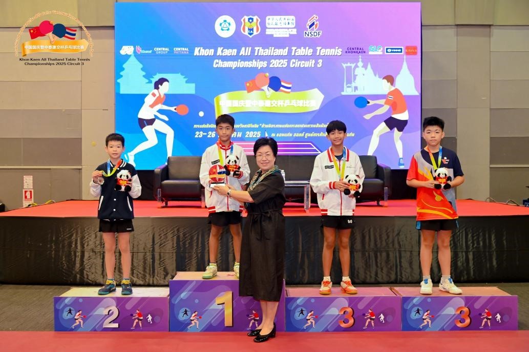 人民網(wǎng)曼谷10月29日電 (記者孫廣勇)10月23日至26日,由中國駐孔敬總領(lǐng)館與泰國乒乓球協(xié)會、孔敬公立華僑學(xué)校聯(lián)合主辦的全泰四星級乒乓球賽“中國國慶暨中泰建交杯乒乓球比賽”圓滿落下帷幕。