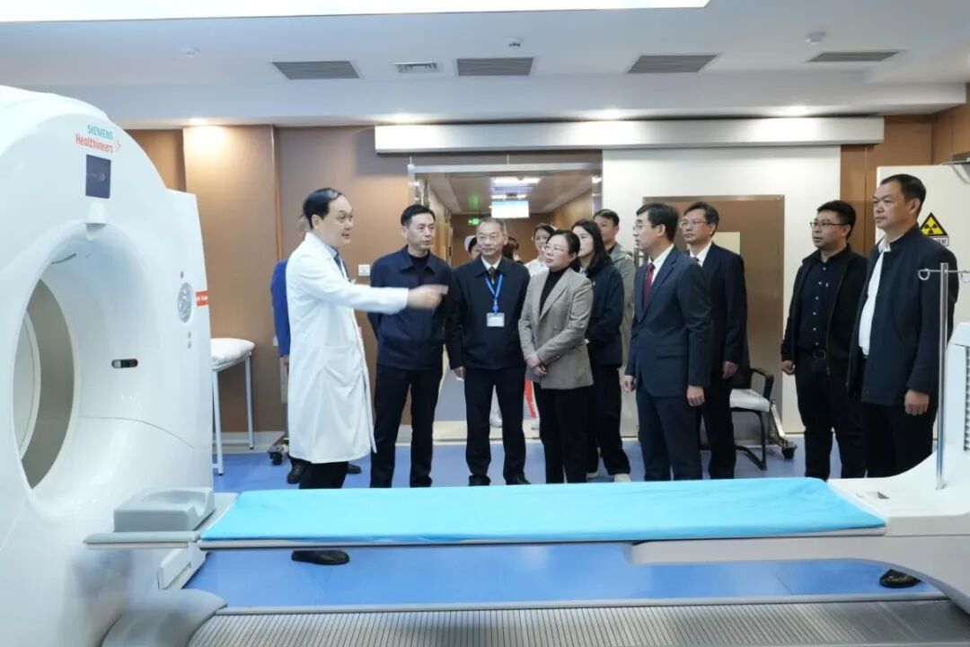 儀式結(jié)束后,與會人員一同參觀了嶄新的核醫(yī)學科,詳細了解了其先進的設(shè)備配置、嚴謹?shù)募夹g(shù)流程與完善的輻射防護措施。