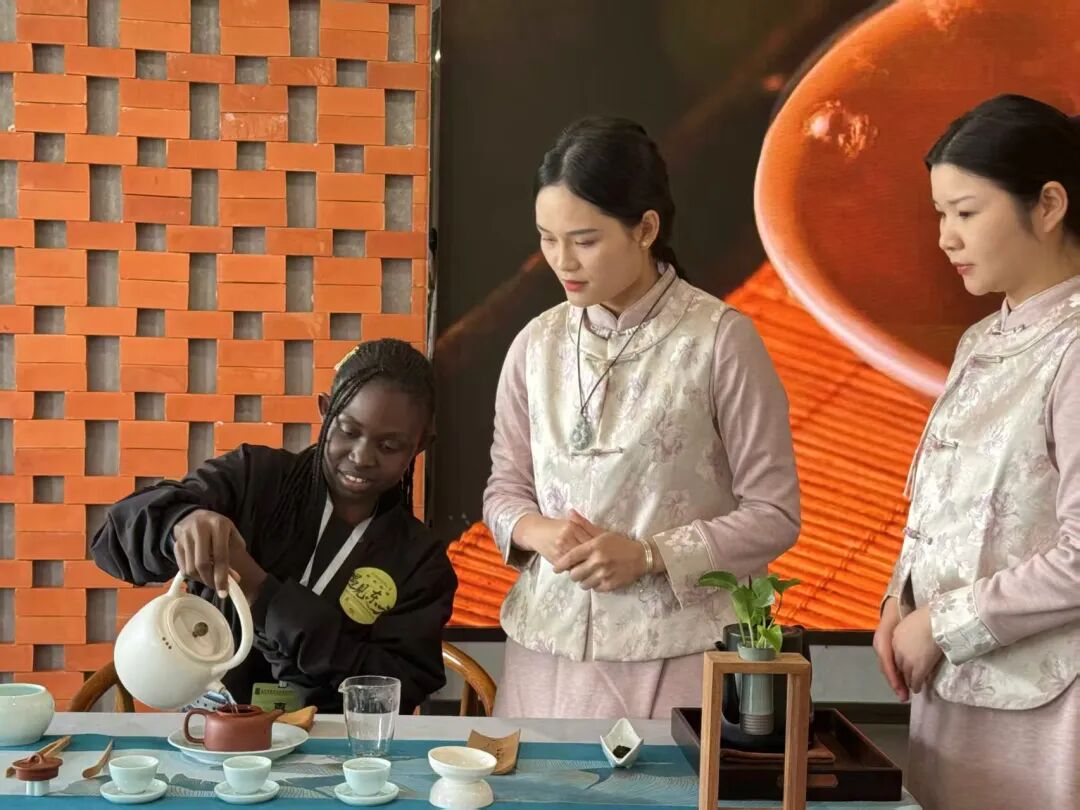 這場跨越國界的“重走茶道 遇見東方”之旅,也激發(fā)出年輕學(xué)子們成為文化傳播橋梁的心愿。來自泰國的中國地質(zhì)大學(xué)學(xué)生張明誠在行程中一直用鏡頭記錄,“我拍了好多視頻,為了給泰國人介紹青磚茶,因為我覺得大部分泰國人不知道青磚茶是什么。”他之前從未見過磚形的茶,卻在品嘗后驚喜于其醇厚與留香,漸漸喜歡上這一獨特的中國茶韻。