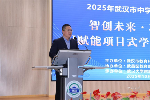 武漢大學附屬外語學校校長陳三軍致歡迎辭時,以化學比喻點燃氣氛,將初三化學教師比作“神話與科學邊界的啟蒙者”,期許活動如“二氧化錳”為教學注入活力,愿武漢化學教學綻放“焰色試驗”般的多彩光彩。