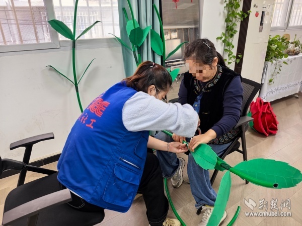 這棵“愛之樹”是街道殘聯(lián)聯(lián)合西廠口社區(qū)開展的“杏運相伴,玫好家園”殘健融合公共藝術(shù)共創(chuàng)活動的成果,轄區(qū)陽光家園學(xué)員、助殘志愿者、居民代表和社區(qū)工作者共同參與,以親手制作的巨型銀杏葉與玫瑰花裝點社區(qū)空間,傳遞“黃鶴樓下是我家”的溫暖。