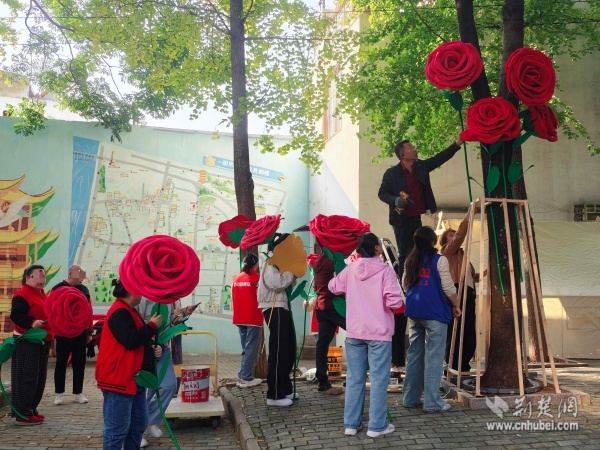 荊楚網(wǎng)(湖北日報網(wǎng))訊(通訊員 陳曉燕 周佳穎)11月5日,武昌區(qū)黃鶴樓街道后宰門街角一道獨特的風(fēng)景引人注目,一棵“永不凋零”的“愛之樹”絢麗綻放,樹上盛開的巨型玫瑰花與一旁的月球投影裝置相映成趣,與遠方的黃鶴樓共同構(gòu)成一幅詩意城市景觀。