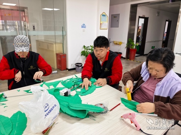 在為期兩周的創(chuàng)作中,陽光家園學(xué)員在志愿者的陪伴下,從設(shè)計畫圖、精準剪裁到立體塑形、精細組裝,系統(tǒng)學(xué)習(xí)并逐步掌握了銀杏葉與玫瑰花的制作技巧。“第一次參與制作這么大的藝術(shù)作品,沒想到我也能創(chuàng)造出這么美的作品!”一位學(xué)員自豪地展示成果。創(chuàng)作過程中,殘健伙伴分工協(xié)作、各展所長,在默契配合中締結(jié)了深厚情誼。