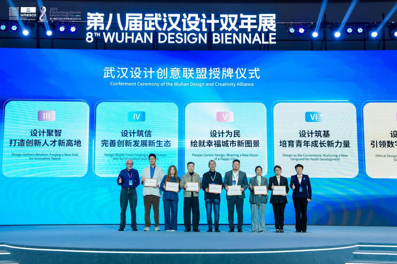 武漢有設計相關專業(yè)高校50余所,設計專業(yè)在校學生近10萬人,設計相關企業(yè)突破1萬家,10余個設計行業(yè)協(xié)會,從業(yè)人員超50萬,形成了強大的“設計創(chuàng)意聯盟”,催生出了集產業(yè)鏈、創(chuàng)新鏈、人才鏈、價值鏈于一體的融合創(chuàng)新發(fā)展生態(tài)體系。在開幕式的最后,“武漢設計創(chuàng)意聯盟”正式授牌,來自設計企業(yè)、行業(yè)協(xié)會、高校院所和獨立設計師等領域多元設計力量代表共同見證。未來,“武漢設計創(chuàng)意聯盟”將奮力實現設計融城,構筑協(xié)同發(fā)展新范式;設計賦能,激活產業(yè)升級新動能;設計聚智,打造創(chuàng)新人才新高地;設計筑信,完善創(chuàng)新發(fā)展新生態(tài);設計為民,繪就幸福城市新圖景;設計筑基,培育青年成長新力量;設計向善,引領數字文明新航向;設計聯通,拓展國際交往新空間八大目標。