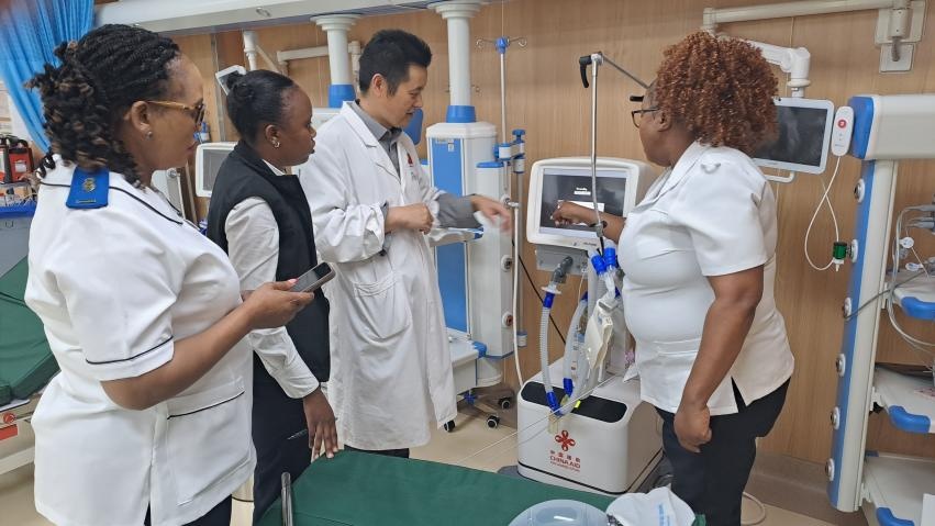 人民網(wǎng)約翰內(nèi)斯堡11月7日電 (記者鄒松)中國(guó)(湖北)第19批援萊索托醫(yī)療隊(duì)近日在馬塞盧地區(qū)醫(yī)院重癥監(jiān)護(hù)室開展呼吸機(jī)操作培訓(xùn)。醫(yī)療隊(duì)隊(duì)長(zhǎng)吳輝主任醫(yī)師以理論講解與現(xiàn)場(chǎng)實(shí)操相結(jié)合,為科室職工系統(tǒng)介紹了呼吸機(jī)的基本知識(shí)與使用技巧,受到當(dāng)?shù)蒯t(yī)護(hù)人員的熱烈歡迎。