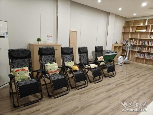 走進(jìn)這個(gè)330平方米的升級(jí)版驛站,變化隨處可見(jiàn)。這里不僅有基礎(chǔ)的微波爐、冰箱、沙發(fā)等,更添置了共享淋浴間、聽(tīng)書(shū)機(jī)、直飲機(jī)、空調(diào)等。曾經(jīng)的后廳,如今被打造成一個(gè)多功能“潮玩空間”——午休時(shí)間,拉上窗簾,這里是配備了舒適躺椅的靜謐午睡室;工作之余,這里又變身為熱鬧的“社交俱樂(lè)部”,大家可以一起看電視、玩桌游,徹底放松身心。