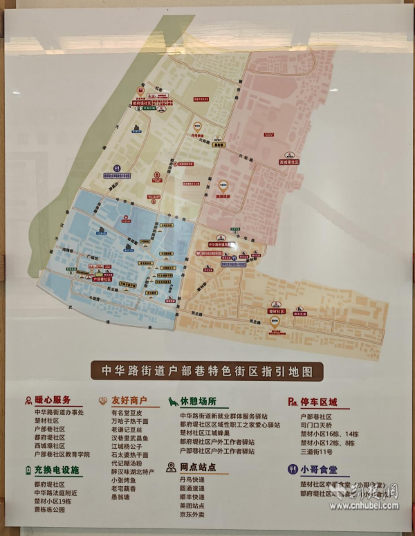 這一切的背后,是“戶(hù)部巷老茶館”聯(lián)席議事制度的有力支撐。騎手停車(chē)難?社區(qū)立即協(xié)調(diào),騰挪出專(zhuān)用停車(chē)位。取餐高峰期擁擠?社區(qū)出面與商戶(hù)溝通,促成“騎手優(yōu)先”的默契。社區(qū)還聯(lián)合騎手們,共同繪制了一份戶(hù)部巷友好街區(qū)地圖,清晰標(biāo)注出“小哥食堂”、友好商家、充換電點(diǎn)等關(guān)鍵位置,成為騎手們?nèi)耸忠环莸摹肮ぷ鲗毜洹薄摹瓣P(guān)鍵小事”到“發(fā)展大事”,騎手們的建議真正做到了“件件有回應(yīng),事事有著落”。