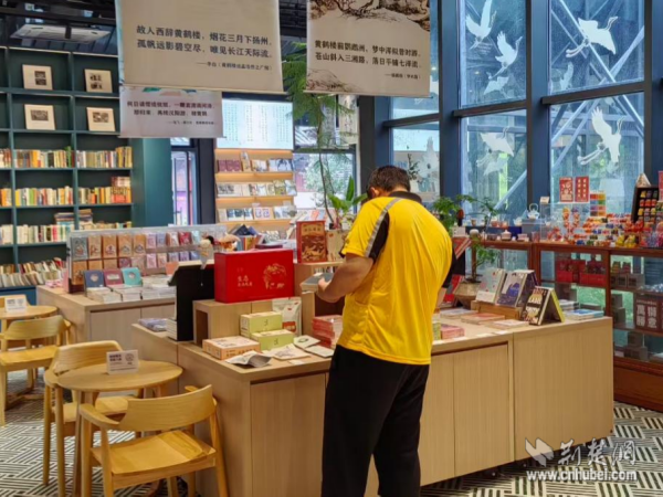 外賣(mài)小哥持積分兌換的購(gòu)書(shū)券挑選書(shū)籍。 通訊員供圖