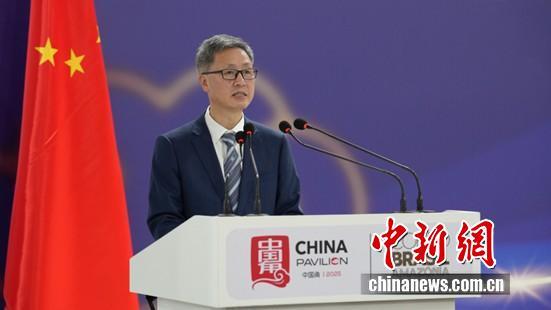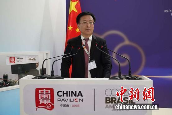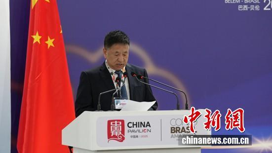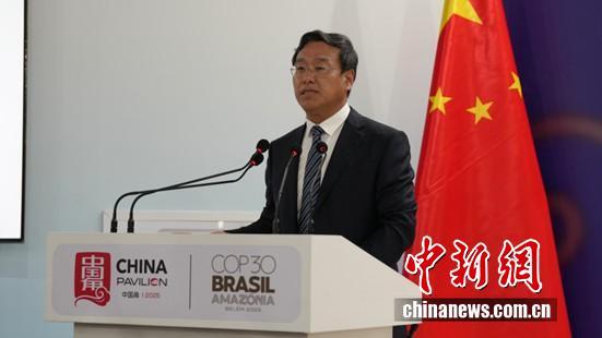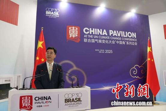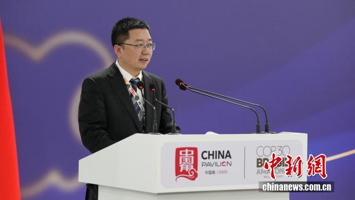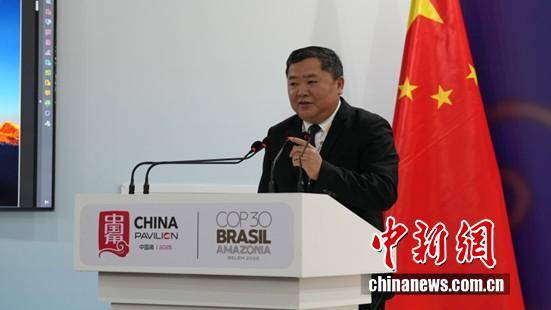 圖為COP30中國代表團團長 生態(tài)環(huán)境部副部長李高主持邊會致辭環(huán)節(jié)。中國新聞網(wǎng)記者 林勐男 攝