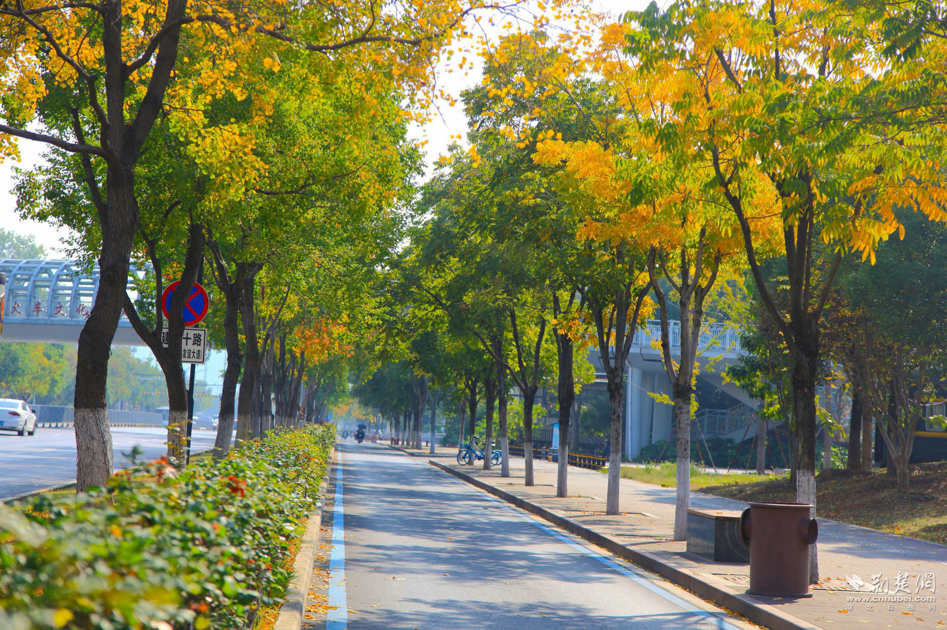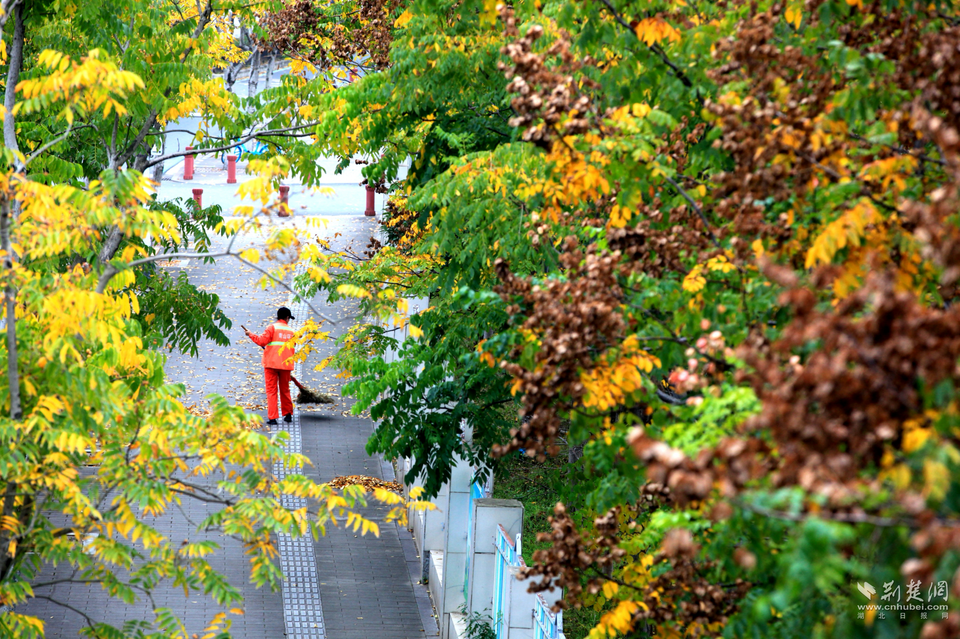 荊楚網(wǎng)(湖北日報網(wǎng))訊(記者 何婧 通訊員 杜媛媛 呂學勇 張忱)近日,武漢市青山區(qū)建設(shè)十路迎來了一年中最絢爛的時刻:無患子金黃璀璨,烏桕深紅如焰,斑斕色彩與沿途公園、綠道共同勾勒動人的城市生態(tài)畫卷,吸引市民駐足打卡。