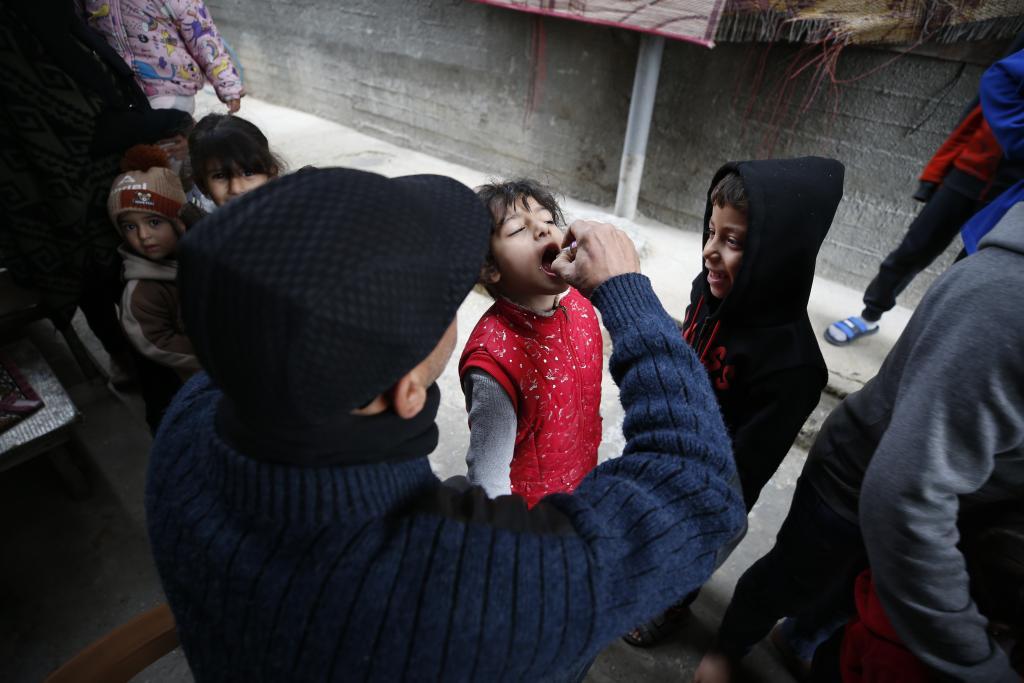 2月22日,工作人員在加沙地帶杰巴利耶為巴勒斯坦兒童接種脊髓灰質(zhì)炎疫苗。新華社發(fā)(馬哈茂德·扎基攝)