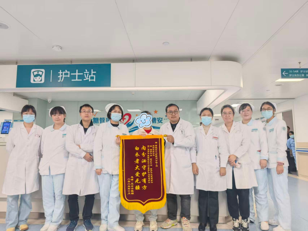 荊楚網(wǎng)(湖北日?qǐng)?bào)網(wǎng))訊(通訊員 周付華)“內(nèi)分泌守護(hù)有方,白衣者大愛(ài)無(wú)疆”“解糖脂代謝之困,施仁術(shù)濟(jì)世之懷”。近日,孝感市中心醫(yī)院內(nèi)分泌科II病區(qū)收到兩面紅底金字的錦旗。剛康復(fù)出院的王阿姨(化名)專程送來(lái)這份感謝,錦旗上的字跡,既是患者的真誠(chéng)贊譽(yù),也記錄了一場(chǎng)救治糖尿病重癥并發(fā)癥患者的攻堅(jiān)過(guò)程。