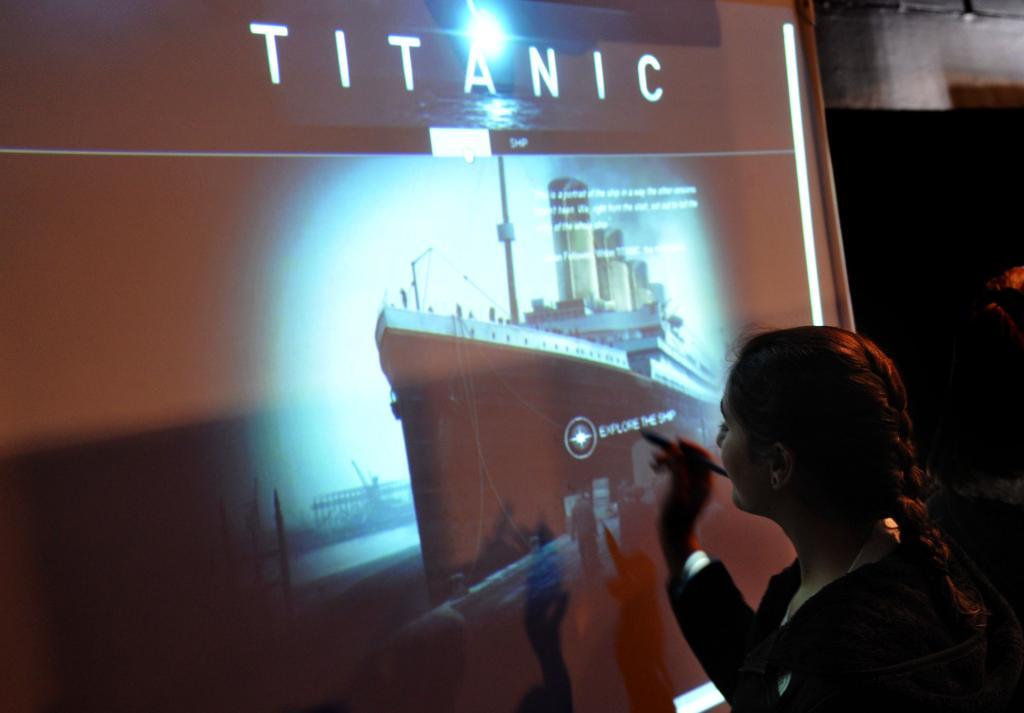 2012年4月11日,在美國紐約曼哈頓的南衡海港博物館,游客在泰坦尼克號失事100周年紀念展上參觀。新華社記者王雷攝