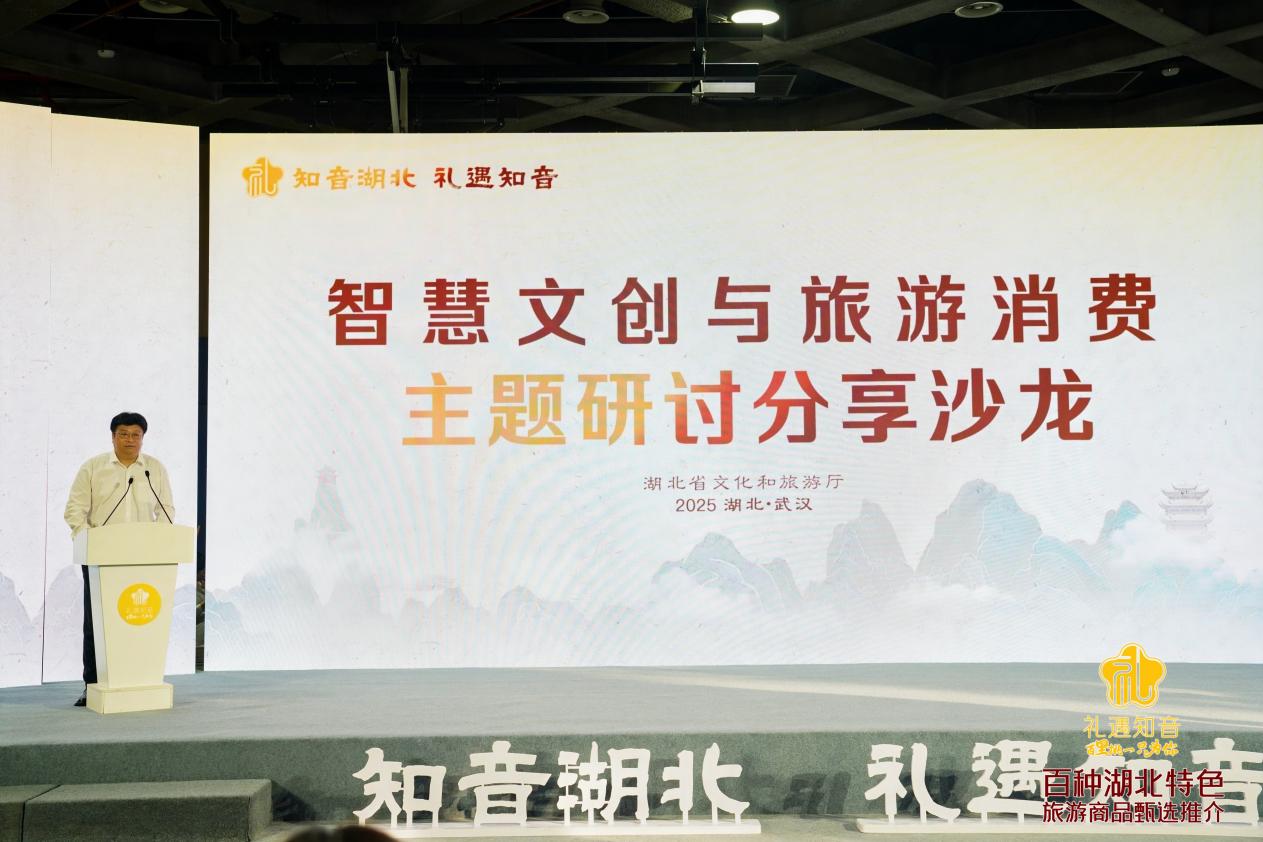 湖北省文化和旅游廳資源開(kāi)發(fā)處副處長(zhǎng)孫洪斌帶來(lái)《文創(chuàng)與旅游商品的營(yíng)銷升維思考》主題分享。