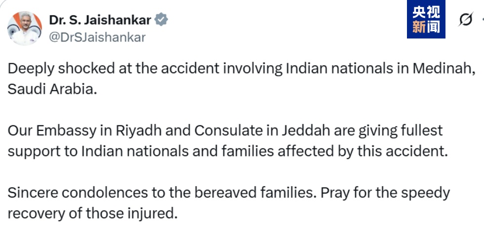 蘇杰生發(fā)表聲明稱,對(duì)在麥地那發(fā)生的涉及印度公民的事故深感震驚,并稱印度駐利雅得大使館和駐吉達(dá)領(lǐng)事館正在全力支持受此次事故影響的印度公民及其家屬。(總臺(tái)記者 張玥 張亞寧)