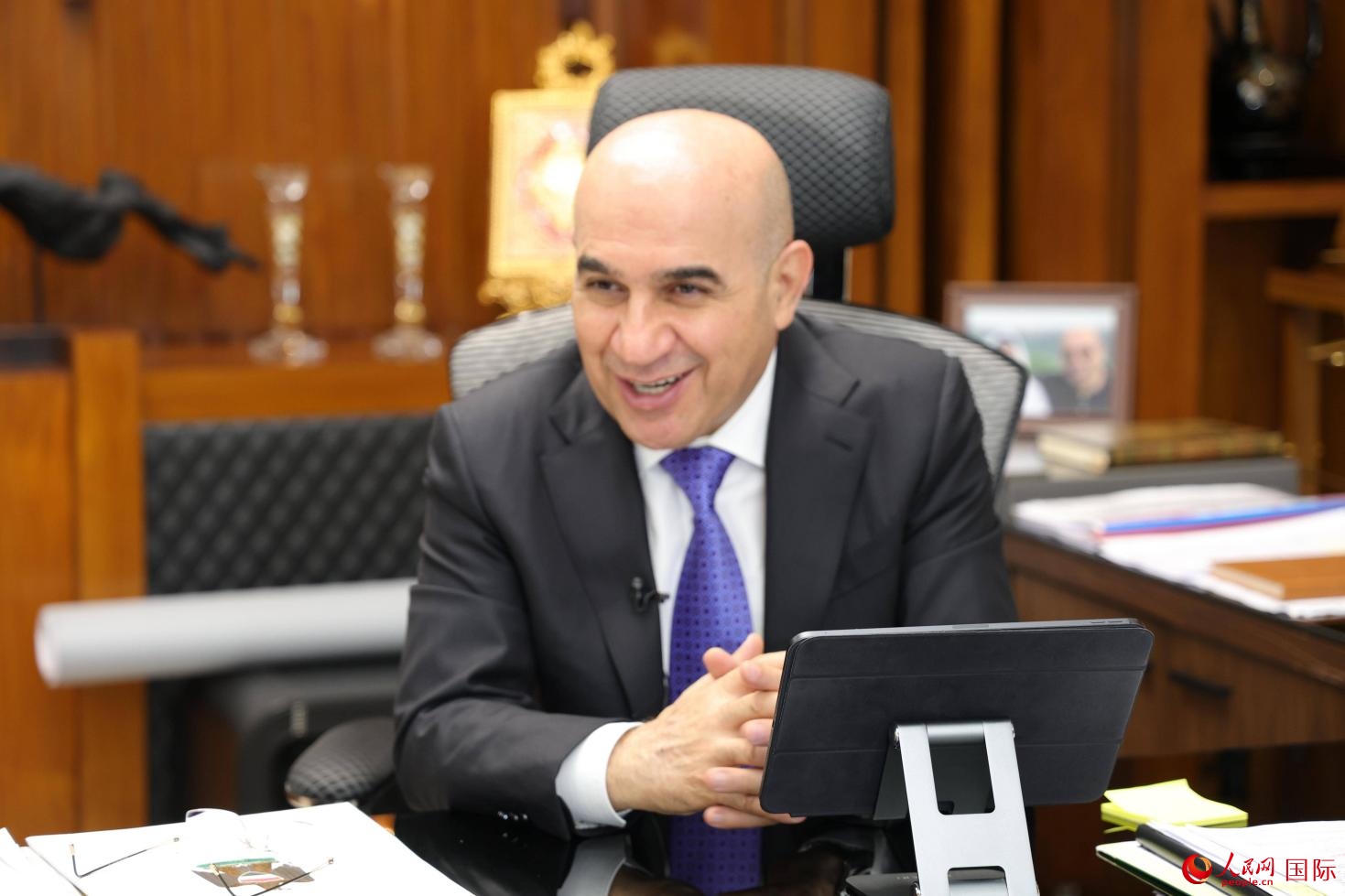 伊拉克住建部部長(zhǎng)雷卡尼接受采訪(fǎng)。人民網(wǎng) 伊納斯·易卜拉欣攝