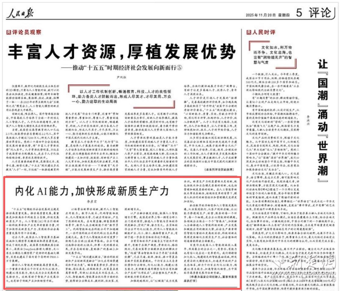 荊楚網(wǎng)(湖北日報(bào)網(wǎng))訊(通訊員 杜軒)11月20日,百度創(chuàng)始人、董事長兼首席執(zhí)行官李彥宏在《人民日報(bào)》發(fā)表題為《內(nèi)化AI能力,加快形成新質(zhì)生產(chǎn)力》的署名文章。他指出,推動人工智能更好賦能高質(zhì)量發(fā)展,一個重要方面是讓千行百業(yè)內(nèi)化AI能力,構(gòu)建AI原生能力,使之成為企業(yè)發(fā)展的原生推動力。