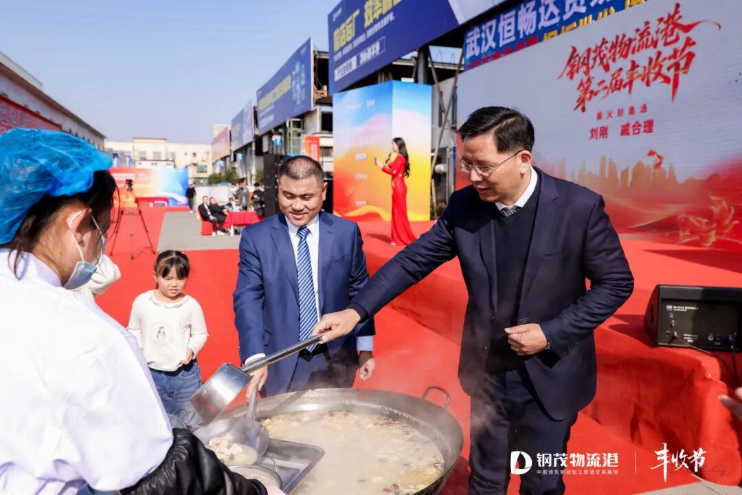發(fā)布會(huì)結(jié)束后,第二屆“豐收節(jié)”溫馨開啟。獨(dú)具地方特色的宴席氛圍,展現(xiàn)了鋼茂物流港與商戶之間的深厚情誼。德成控股集團(tuán)董事長徐小波致以開場誠摯歡迎,德成控股集團(tuán)執(zhí)行總裁劉剛和鋼茂物流港總經(jīng)理戚合理分送寓意吉祥的財(cái)魚湯,將現(xiàn)場氣氛推向高潮。精彩紛呈的文藝表演,更增添了喜慶祥和的節(jié)日氛圍。