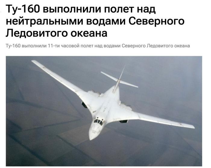 聲明稱, “圖-160遠(yuǎn)程戰(zhàn)略轟炸機(jī)在北冰洋中立水域上空執(zhí)行了一次例行飛行。飛行時(shí)間超過11小時(shí)。”