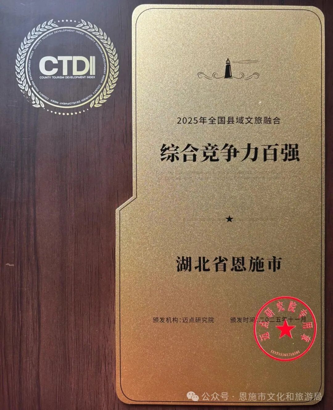 11月21日,全國縣域農(nóng)文旅發(fā)展大會在文旅行業(yè)年度盛會“2025邁點(diǎn)文旅節(jié)暨最佳東方人才周”上隆重舉行。“全國縣域文旅融合100強(qiáng)”榜單正式揭曉,恩施市上榜全國縣域文旅融合綜合競爭力百強(qiáng)名單,位列全國第17名,向世界遞出了一張亮眼的文旅名片。
