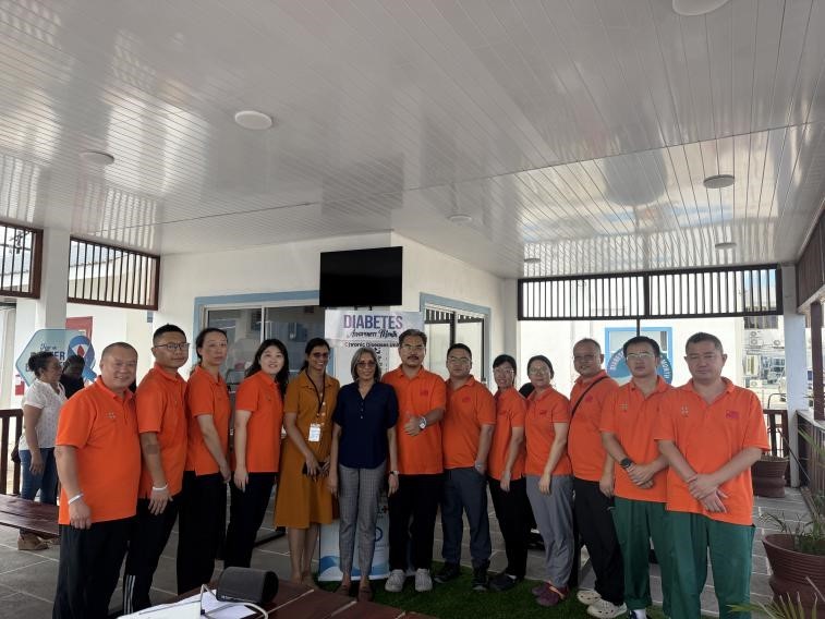 援圭亞那中國醫(yī)療隊隊員與當(dāng)?shù)匦l(wèi)生人員合影。第21批援圭亞那中國醫(yī)療隊供圖