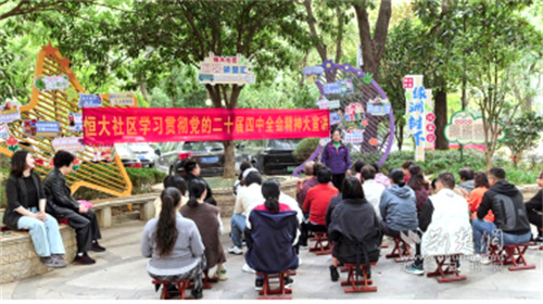 社區(qū)黨委堅持把理論武裝擺在首位,著力構(gòu)建立體化宣講矩陣。創(chuàng)新打造“綠洲樹下”“小亭議事”“周三有約”等特色微陣地,充分發(fā)揮“社區(qū)合伙人”中老黨員、退伍老兵、先進模范等榜樣力量的核心作用,組建“紅色宣講團”。宣講團成員化身“草根講師”,走出會議室,深入綠蔭下、小亭中,以百姓視角、武漢方言、拉家常方式,生動解讀二十屆四中全會精神等理論及最新政策,使黨的聲音更鮮活、更可感。在“潤物有聲”的微課堂里,居民圍坐探討、邊聽邊議、有問有答,實現(xiàn)了理論學(xué)習(xí)“零距離”、思想傳播“接地氣”。同步開展“治理金點子”征集活動,引導(dǎo)居民將學(xué)習(xí)成果轉(zhuǎn)化為參與社區(qū)治理的實際行動,圍繞公共事務(wù)、環(huán)境整治、鄰里互助等議題積極建言獻策,累計收集有效建議100余條。