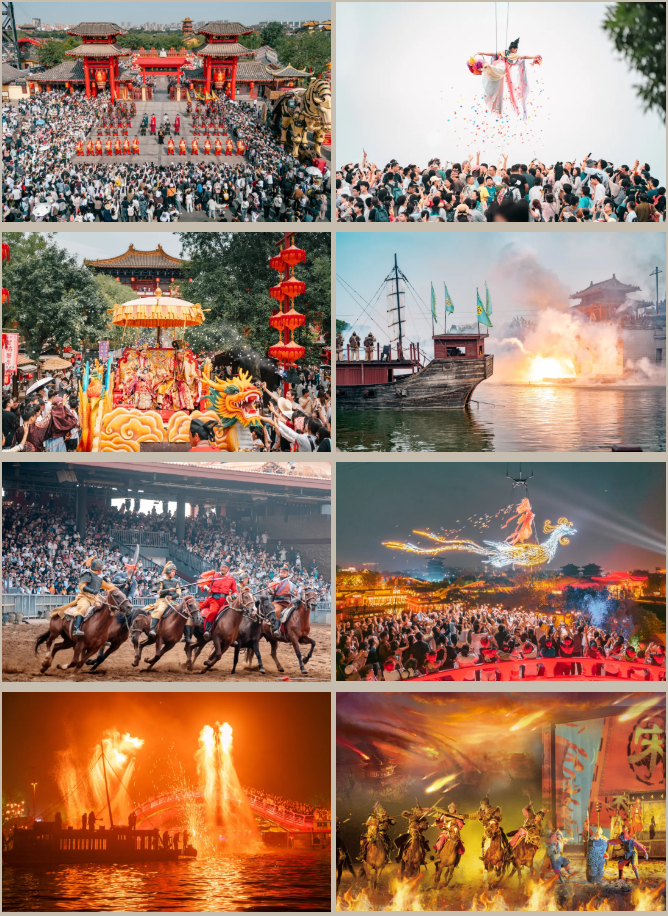狂歡節(jié)期間,大宋百戲全新升級(jí)!經(jīng)典精彩演出:《包公迎賓》《大宋飛天秀》《王員外招婿》《岳飛槍挑小梁王》《大宋·東京保衛(wèi)戰(zhàn)》《岳飛·郾城大捷》《鐵花慶歸航》《打鐵花之盛世大宋》……