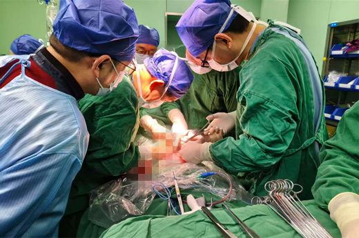 面對這一嚴(yán)峻挑戰(zhàn),在院領(lǐng)導(dǎo)的統(tǒng)籌指導(dǎo)下,團(tuán)隊迅速啟動多學(xué)科協(xié)作,聯(lián)合麻醉科、重癥醫(yī)學(xué)科、影像科等相關(guān)科室進(jìn)行深入術(shù)前討論,全面評估患者心肺功能等基礎(chǔ)狀況,最終制定出一套詳盡手術(shù)方案。