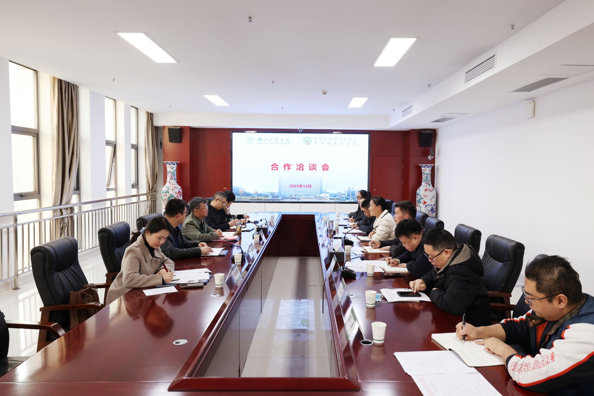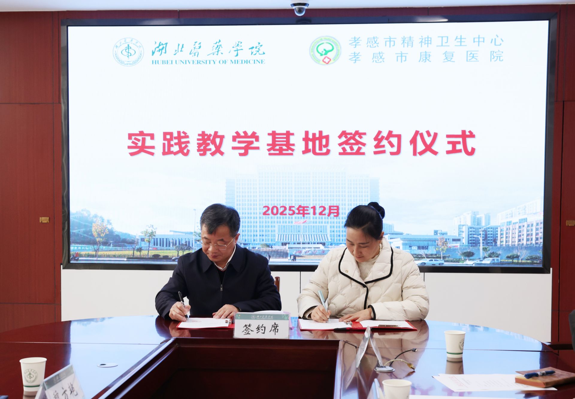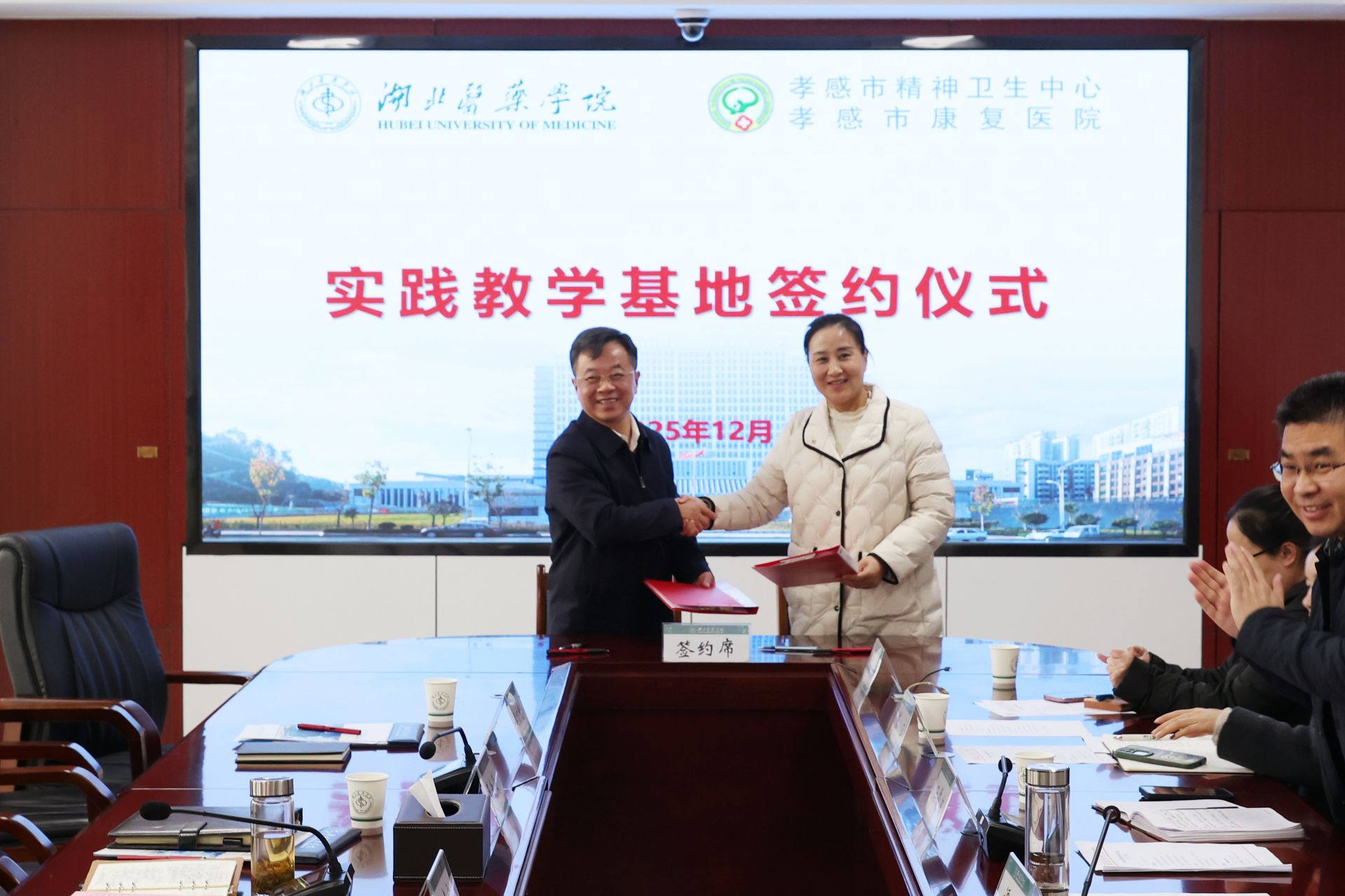 活動(dòng)中,雙方圍繞教學(xué)實(shí)習(xí)、科研合作、繼續(xù)教育等關(guān)鍵議題展開深入探討,達(dá)成廣泛共識(shí)。湖北醫(yī)藥學(xué)院副校長譚艷和孝感市康復(fù)醫(yī)院院長劉曉安分別代表雙方單位,正式簽訂合作協(xié)議。2026年10月,湖北醫(yī)藥學(xué)院將選派10名精神醫(yī)學(xué)專業(yè)學(xué)生與10名護(hù)理專業(yè)學(xué)生,赴我院開展臨床實(shí)習(xí)。雙方在以后的合作中將重點(diǎn)聚焦三大方向:一是優(yōu)化實(shí)習(xí)帶教體系,打造臨床醫(yī)學(xué)與護(hù)理專業(yè)優(yōu)質(zhì)實(shí)踐平臺(tái);二是建立常態(tài)化學(xué)術(shù)交流機(jī)制,共享資源提升教育教學(xué)質(zhì)量;三是依托學(xué)科優(yōu)勢聯(lián)合攻關(guān),圍繞精神疾病防治等領(lǐng)域推進(jìn)科研創(chuàng)新,產(chǎn)出更多臨床價(jià)值成果。