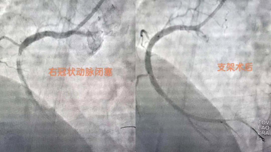 搶時(shí)間就是搶生命!06:46穿刺,06:47成功,06:49冠脈造影明確:右冠狀動(dòng)脈中段完全閉塞。導(dǎo)絲迅速通過(guò),支架精準(zhǔn)植入,07:03血流恢復(fù),手術(shù)成功結(jié)束?;颊咝赝疵黠@緩解,生命體征趨于平穩(wěn)。從入院到血管再通,不到兩小時(shí)。
