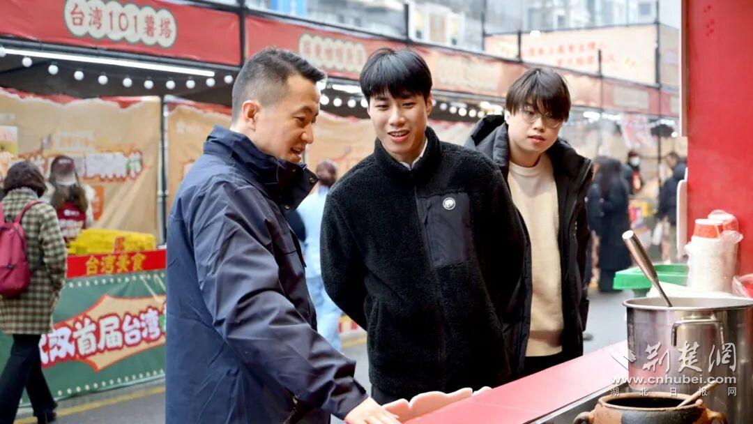 “這是臺(tái)灣的福氣掛包——刈包,又名‘虎咬豬’?!迸_(tái)灣刈包主理人徐慧美向食客介紹,這道兼具早餐與年節(jié)屬性的臺(tái)灣特色小吃,以松軟面皮裹納肥瘦相間的豬肉,搭配香菜、酸菜及特制咸甜花生粉,承載著納福的美好寓意。她坦言,首次來(lái)漢便感受到武漢市民的熱情,自家刈包堅(jiān)持手工現(xiàn)制,力求傳遞地道臺(tái)灣煙火氣,讓食客既飽口福也懂文化?!皟砂睹朗惩?,希望以美食為紐帶拉近兩岸同胞距離?!惫ぷ髦啵旎勖肋€品嘗了武漢熱干面,點(diǎn)贊其麻醬香濃、加辣更過(guò)癮,期待未來(lái)多來(lái)漢交流。