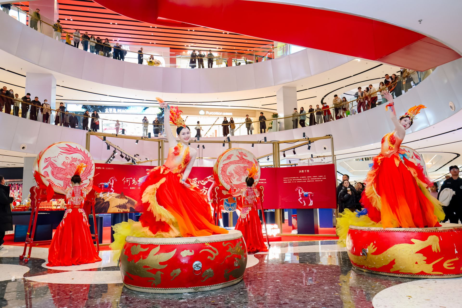 文化賦能讓消費(fèi)更具溫度。戶外500平方米祥云燈籠矩陣融入楚文化鳳鳥(niǎo)紋、瑞獸紋元素,搭配巨型燈籠裝置成為跨年標(biāo)志性打卡地;室內(nèi)“朱炳仁?銅”新春馬年武漢首展展出《燃燒的向日葵》等精品,開(kāi)放銅板拓印體驗(yàn)。跨年夜,20米超長(zhǎng)冷煙火、外立面激光倒計(jì)時(shí)與楚地特色表演同步上演,千份盒馬餃子免費(fèi)派送,“新年照相館”定格溫馨年味,讓市民在濃厚氛圍中迎接2026年。