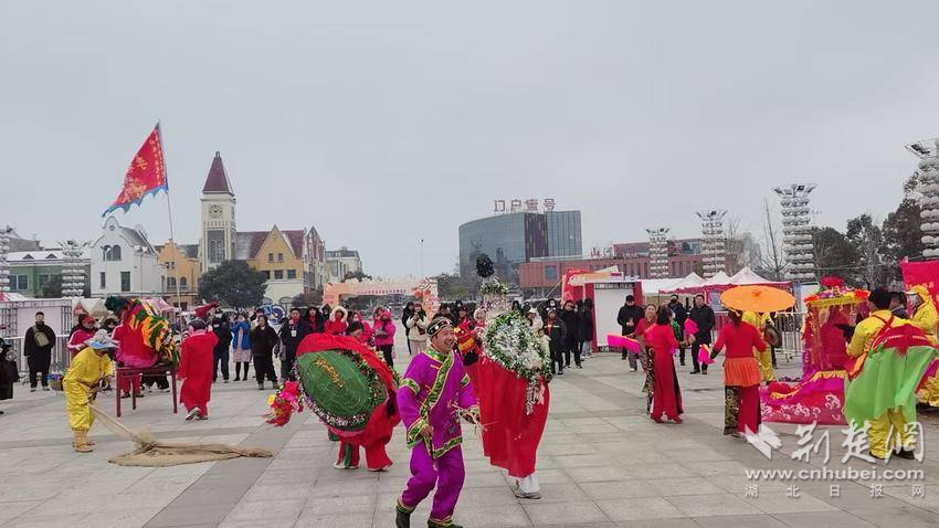 迎新年、逛市集、聽音樂、品年味。當(dāng)日,寒潮來襲,也擋不住市民的熱情?;顒蝇F(xiàn)場,表演歌曲串燒《倔強+小鎮(zhèn)姑娘》、鄉(xiāng)村歌手陳喜安原創(chuàng)歌曲《北山我就要給世界一點顏色看看》和《英雄聯(lián)盟》等30余個精彩文藝節(jié)目,贏得觀眾的掌聲。來自李樓舞獅、三里城鎮(zhèn)農(nóng)民藝術(shù)團開展采蓮船、高腔皮影等非遺民俗展演,吸引市民前來觀看拍照直播,整個廣場一派歡樂祥和、昂揚向上的迎新氛圍,既豐富群眾精神文化生活,又打造文旅消費新場景。