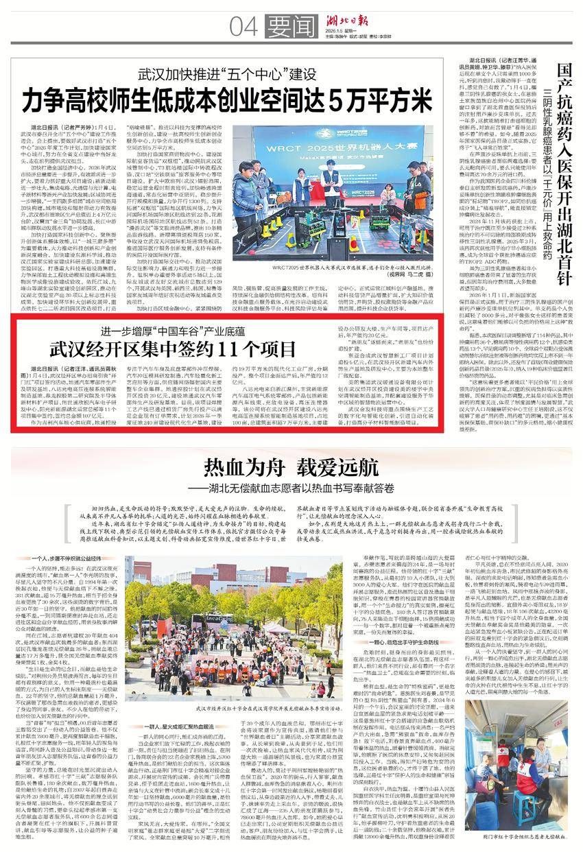 1月5日,湖北日報(bào)要聞版報(bào)道:進(jìn)一步增厚“中國車谷”產(chǎn)業(yè)底蘊(yùn) 武漢經(jīng)開區(qū)集中簽約11個(gè)項(xiàng)目