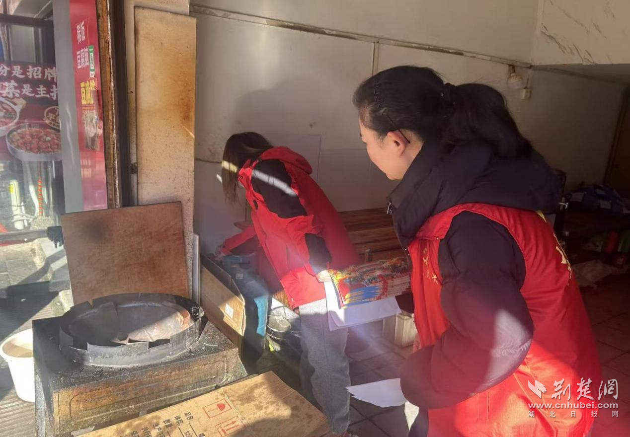 社區(qū)工作人員對商鋪進行燃?xì)獍踩珯z查。通訊員供圖