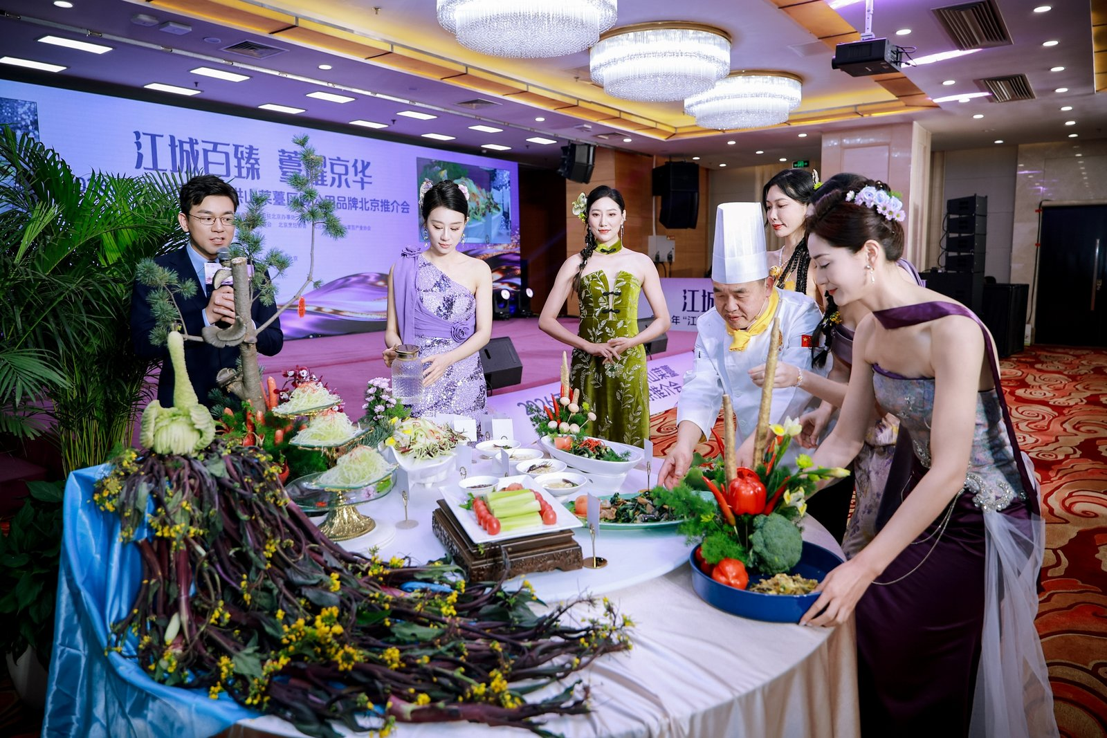 活動現(xiàn)場,《千年一“薹”,京誠所愛》情景劇生動詮釋洪山菜薹的傳承與創(chuàng)新,產(chǎn)品走秀與藝術(shù)插花表演凸顯其美學(xué)價值,楚菜名廚現(xiàn)場演繹“一薹多吃”宴席,展現(xiàn)菜薹融入京鄂風(fēng)味的烹飪創(chuàng)意。京城網(wǎng)紅大廚隋坡登臺品鑒,為洪山菜薹實力“打call”?,F(xiàn)場同步設(shè)置國風(fēng)市集,展出鮮薹、鎖鮮產(chǎn)品及禮盒,供嘉賓品鑒體驗。