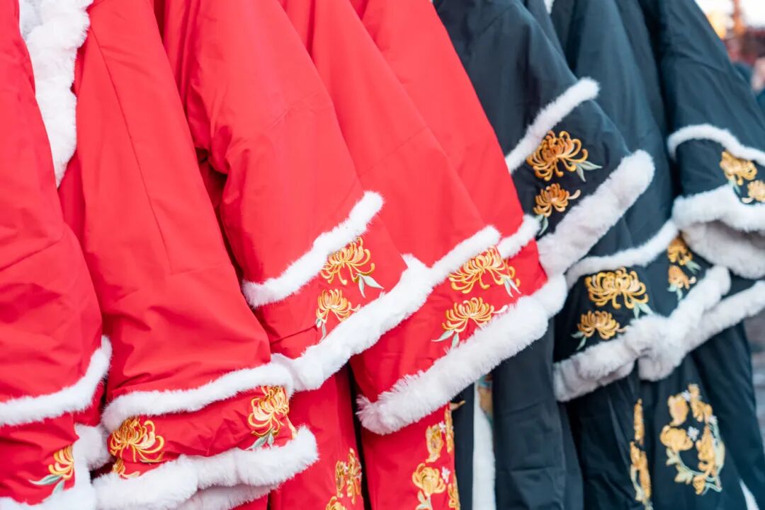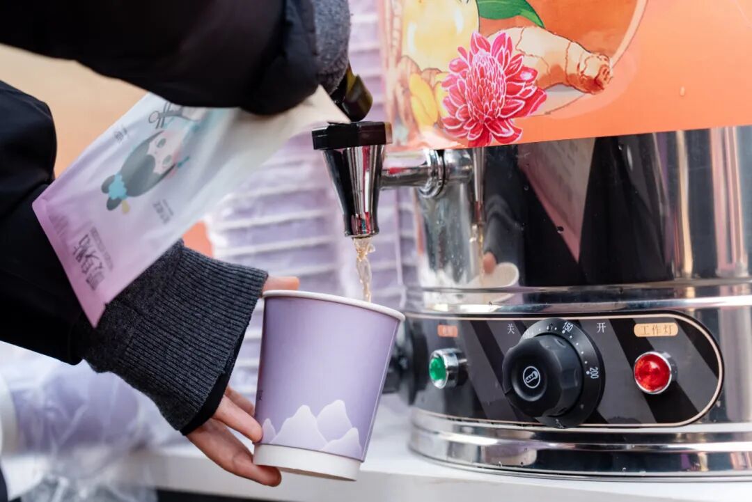 風(fēng)雪愈急,人間愈暖。賞雪之余,防寒保暖與安全防范也很重要。園中的披風(fēng)可以免費(fèi)租借,多處店家有暖寶寶免費(fèi)領(lǐng)取和紅糖姜茶免費(fèi)熱飲,在清明上河園,風(fēng)雪再大亦有“晚來天欲雪,能飲一杯無”的暖意。