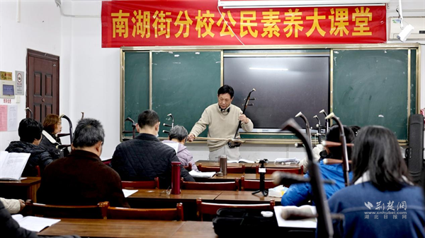 荊楚網(wǎng)(湖北日報網(wǎng))訊(記者 李燕 通訊員 羅嘉柯)早上九時,武昌區(qū)南湖街道一棟樸素的三層小樓已開始躍動起生活的韻律。二胡聲悠揚(yáng),葫蘆絲清亮,提著樂器的阿姨們步履輕快、笑意盈盈地走進(jìn)樓內(nèi)。這里是南湖街老年大學(xué),一個每日門庭若市、笑語盈窗的地方。每一位走進(jìn)這里的老人,都仿佛推開了另一扇生活的門——門外是瑣碎日常,門內(nèi)卻是歌聲、筆墨、舞蹈與友誼。而這幅生機(jī)盎然的景象,離不開一位始終與他們并肩同行的人——校長李雨嘉。