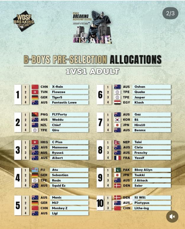 1月17日至18日,由世界體育舞蹈聯(lián)合會(huì)(WDSF)主辦、澳大利亞體育舞蹈聯(lián)合會(huì)承辦的2026 WDSF World Breaking Dancesport Festival在澳大利亞布里斯班圓滿收官。本次霹靂舞比賽既是世界巡回積分賽,也是青奧會(huì)積分賽,不僅為全球頂尖霹靂舞運(yùn)動(dòng)員提供了高水準(zhǔn)的競(jìng)技舞臺(tái),更旨在推動(dòng)霹靂舞項(xiàng)目進(jìn)入2032年布里斯班奧運(yùn)會(huì)。中國霹靂舞隊(duì)表現(xiàn)搶眼,捷報(bào)頻傳。其中,我省運(yùn)動(dòng)員王瑞苗在個(gè)人賽男子組中過關(guān)闖將,并在決賽中以2:1戰(zhàn)勝日本名將Hiro 10成功奪冠,這不僅是他個(gè)人職業(yè)生涯的里程碑,也是省社體中心在WDSF賽事上獲得的首個(gè)世界冠軍。