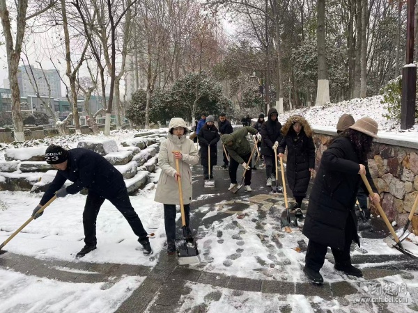 荊楚網(wǎng)(湖北日報網(wǎng))訊(通訊員 周佳穎)近日,武漢遭遇寒潮大風(fēng)與低溫雨雪冰凍天氣。為保障道路暢通、守護居民平安,武昌區(qū)黃鶴樓街道迅速響應(yīng)、周密部署,廣泛發(fā)動街道人大代表、機關(guān)干部職工、社區(qū)工作者、共建單位及志愿者等多方力量,共同投身掃雪除冰、互助暖冬的行動中,全力保障城市運行安全,守護風(fēng)雪中的家園溫度。