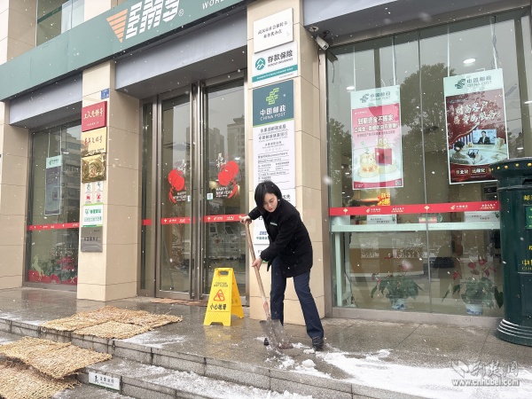 中國郵政武昌區(qū)分公司各網(wǎng)點員工清掃門前冰雪。 通訊員供圖