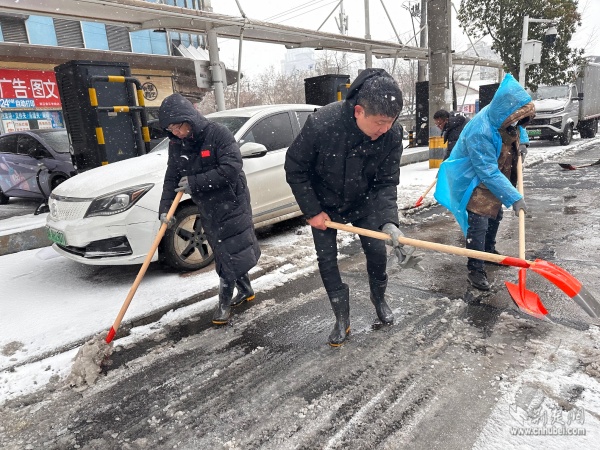 街道領(lǐng)導(dǎo)班子帶頭清雪。 通訊員供圖
