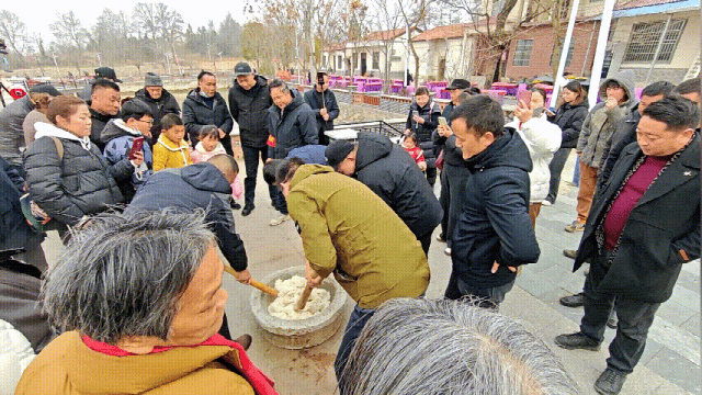 △ 游客圍觀體驗(yàn)打糍粑。