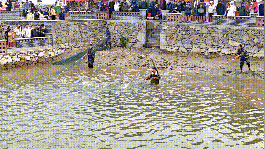 村民們拉動(dòng)手中的漁網(wǎng),平靜的水面頓時(shí)沸騰,魚(yú)兒打滾撒歡。圍觀人群爆發(fā)出陣陣歡呼,伴隨著攝影師們快門(mén)的咔嚓聲,這一鄉(xiāng)村傳統(tǒng)捕魚(yú)場(chǎng)景被定格在許多游客的手機(jī)屏幕中。