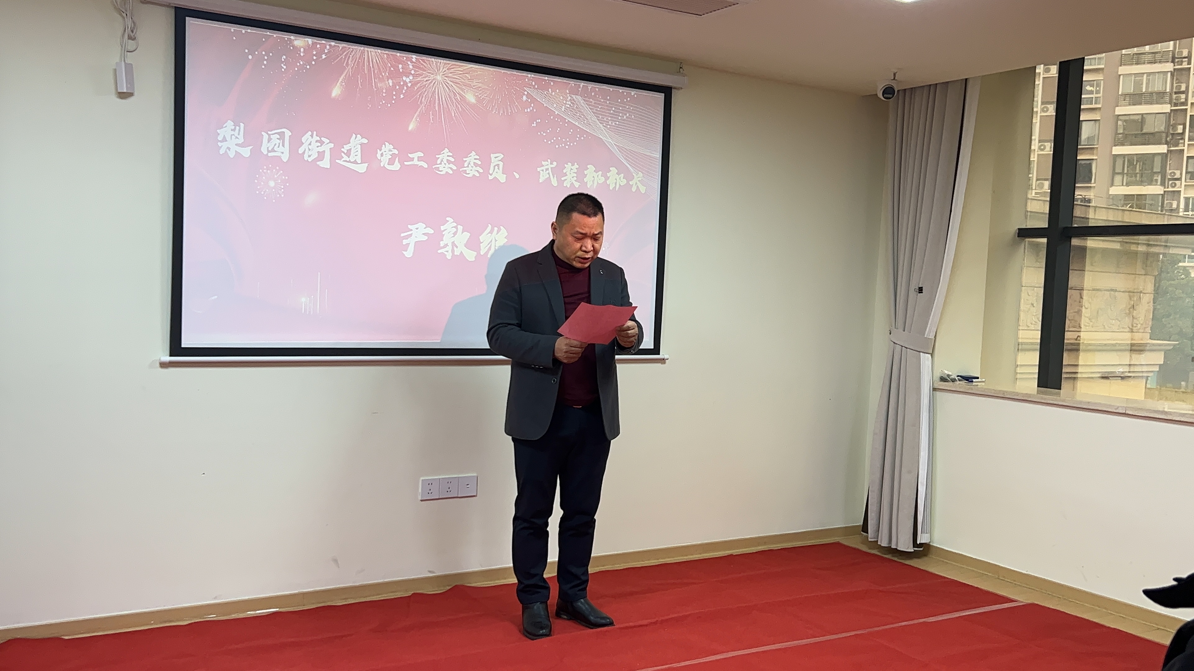 活動當(dāng)日,養(yǎng)老服務(wù)中心內(nèi)張燈結(jié)彩,洋溢著喜慶祥和的節(jié)日氛圍。梨園街道梨園街道黨工委委員、武裝部部長尹敦維親臨現(xiàn)場并發(fā)表熱情洋溢的致辭。他向在場的全體居民,尤其是老年朋友和退役軍人致以誠摯的新春祝福,高度贊揚(yáng)了退役軍人過去為國防事業(yè)做出的貢獻(xiàn),并強(qiáng)調(diào)了在新時(shí)期繼承和發(fā)揚(yáng)革命精神、增強(qiáng)全民國防觀念的重要性。他同時(shí)對康益壽助老服務(wù)中心精心籌備本次活動、為街道養(yǎng)老事業(yè)和雙擁工作提供的支持表示感謝。