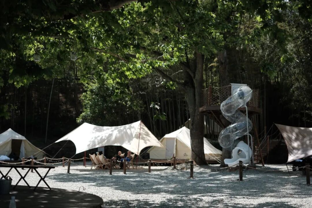 自帶空調(diào)的豪華帳篷,甩手就能入??;還可以體驗多種戶外休閑項目,如射箭、滑滑梯、秋千、垂釣溯溪等,還有不定期音樂會、露天電影等各類主題活動。